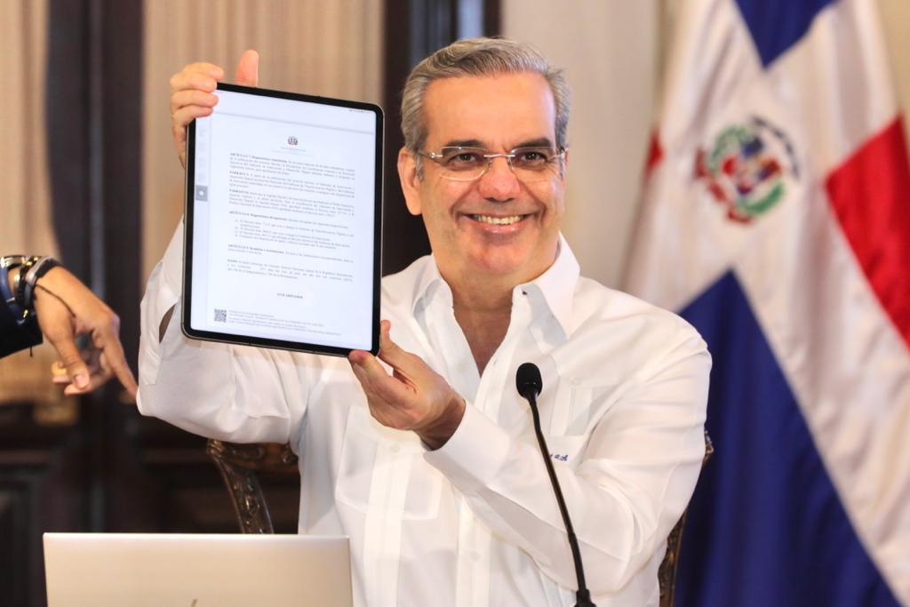 Santo Domingo. – El presidente Luis Abinader configuró este jueves su firma digital cualificada, a través del Portafirmas Gubernamental, Firma GOB y procedió a firmar su primer decreto de manera digital en esta plataforma.