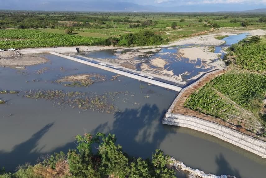 Caba Romano, señaló que está obra, también va en beneficio de más de 10 mil tareas sembradas de productos agrícolas de Azua, las cuales resultaban afectadas por las crecidas del río.